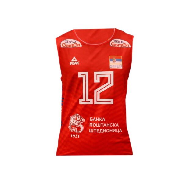 Originalni dres muske odbojkaške reprezentacije Srbije u crvenoj boji.